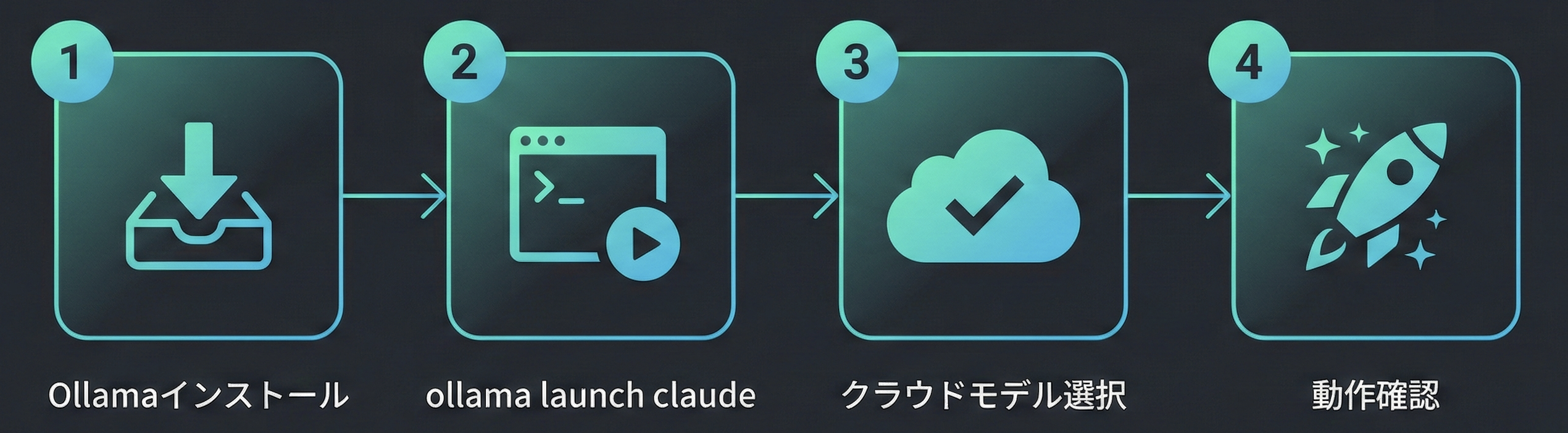 ollama launch claudeをターミナルで実行する- クラウドモデル(qwen3-coder:480b-cloud推奨)を選択して、自分のプロジェクトで試す
